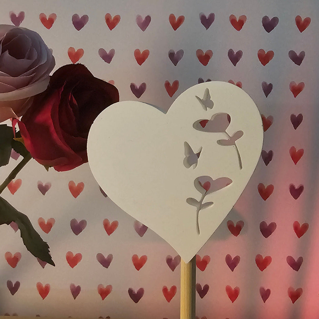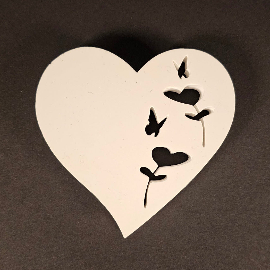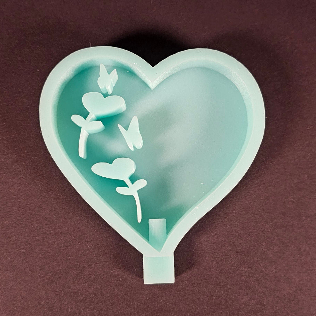 Ein schwebendes Herz voller Frühlingszauber – mit zwei verliebten Schmetterlingen, die gemeinsam eine Blüte erkundschaften. Diese charmante Silikonform bringt romantische Leichtigkeit in deine Kreationen und verzaubert jeden, der sie erblickt.