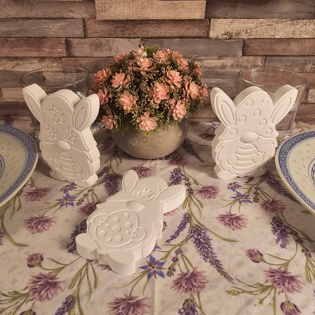 Drei niedliche Wichtel mit Hasen-Öhrchen warten darauf, zusammengesteckt zu werden – perfekt für deine Osterdeko! Jede Figur hält ein Osterei in der Hand, das darauf wartet, von dir bemalt zu werden. Mit dieser Silikonform schaffst du im Handumdrehen süße Wichtel, die dein Zuhause in Osterlaune versetzen.